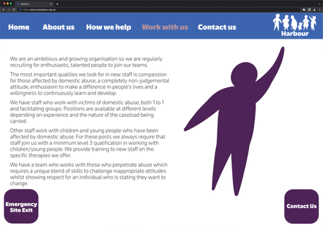 Rebranding a domestic abuse charity. Harbour is a charity that works with survivors of domestic abuse. The brief was to create a friendly neutral website that was simple and easy to use so people could find the help they needed.As well as an instagram to help reach more people and spread information about domestic abuse.